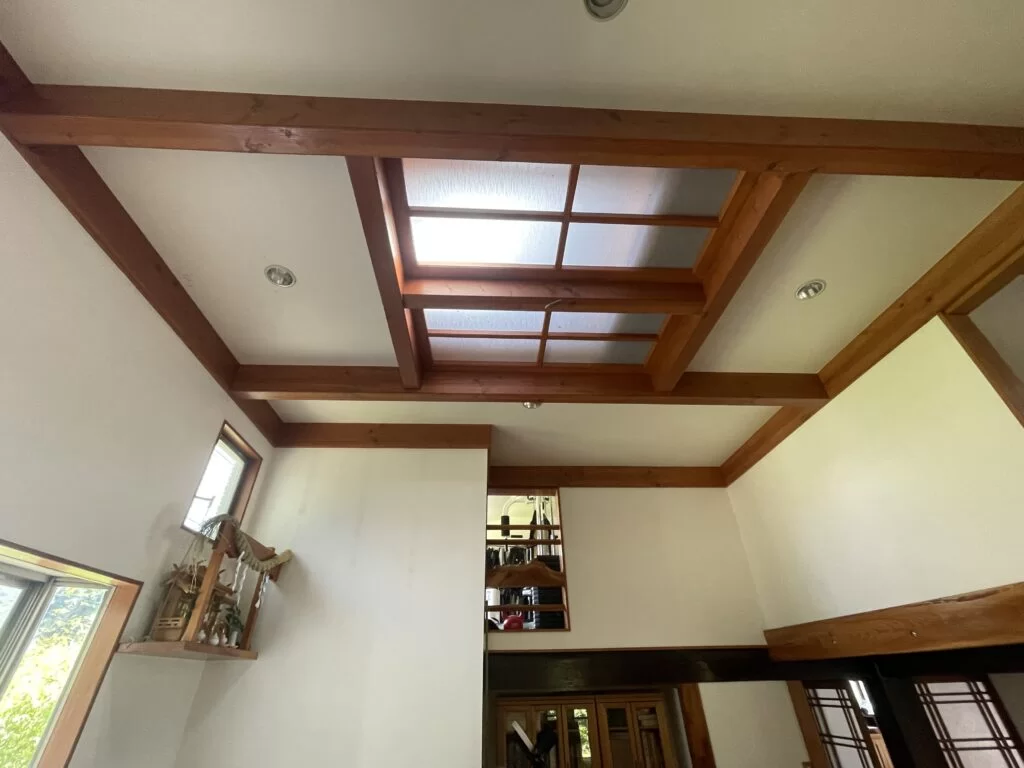 施工当時からふんだんに使っていた無垢材の建具や柱、天井の梁。20年経った今でも反りや歪みもなく、美しく保たれており、お施主様もとても大切に使ってくださっていました。