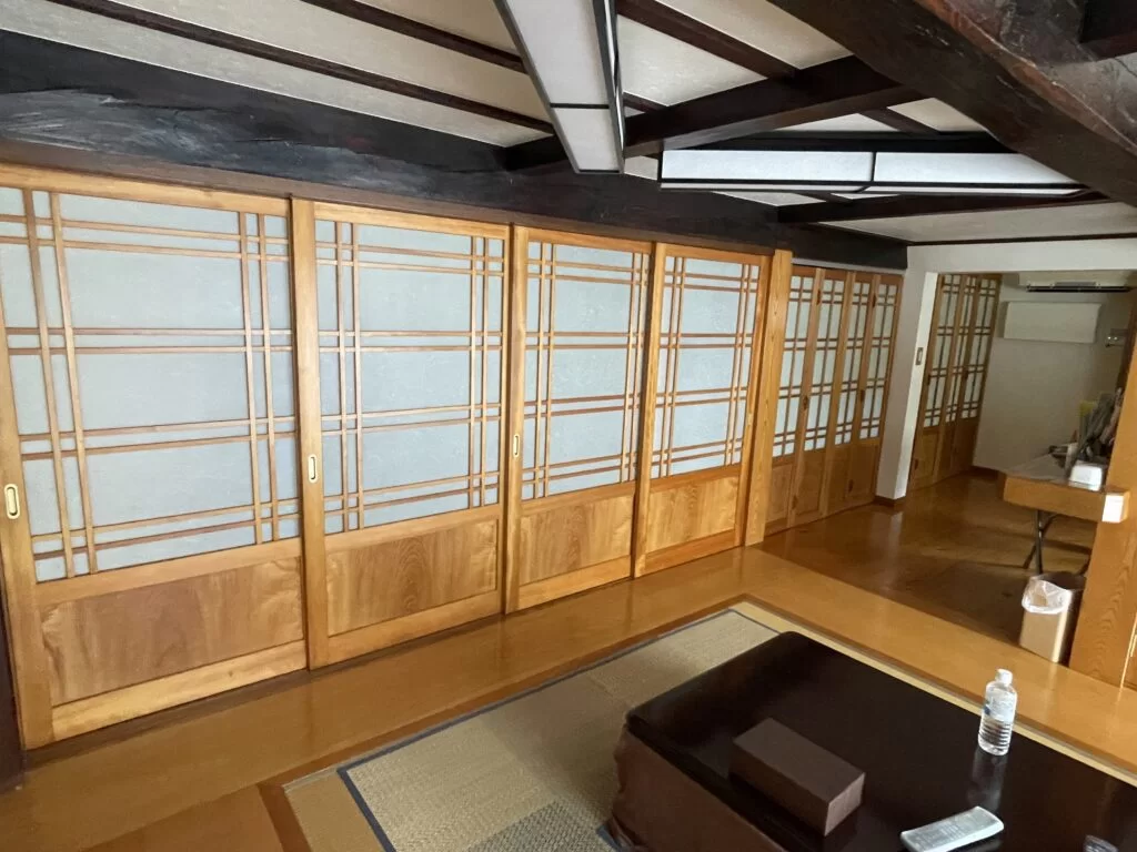 特に格子入りの引き戸や天井の構造材など、自然素材の持つ風合いが年月とともにより一層引き立っていました。