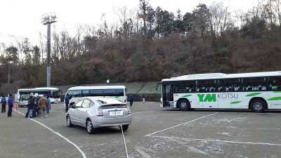 ↑大型バスで選手達を送迎します。