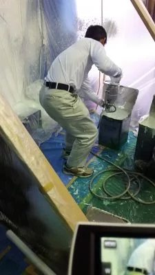 現場親方ブログ塗装技能士資格取得研修に参加してきました。こんにちは。リ・フォーユーの武内です。去年に続いて今年も「一級塗装技能士検定」取得のための研修に参加してきました。今回は松井映二君と参加してきました。↑パテ処理↑製図↑調色↑吹き付け作業去年は試験の申し込みが間に合わなかったのですが、今年は間に合ったので、今回の研修で不安要素をつぶしていきました。あとは練習を繰り返して本番に臨みます。無料お見積はこちら