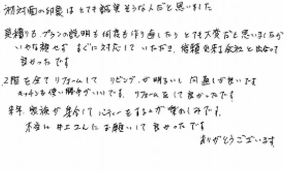 口コミ評判相模原市緑区 S様(全面リフォーム)社屋の2階を住居にされており、若い時にご夫婦で造作を行ったとの事でした。躯体は重量鉄骨造でしたので、2階部分の天井から壁、床まですべて解体して間取りを大きく変えたリフォームとなりました。無料お見積はこちら