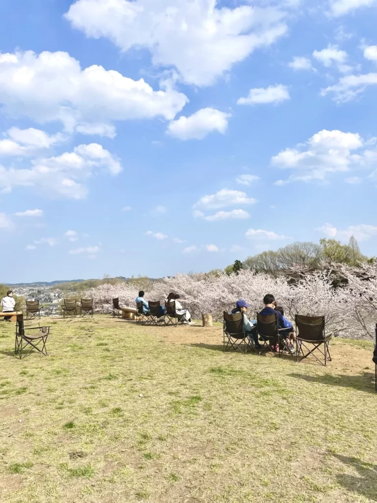 庭には椅子が置いてあり、綺麗な桜を見ながらゆっくりできます。