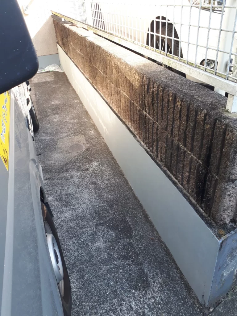 現場親方ブログ【塗装】最近多くなってきています。コンクリート塗装こんにちは塗装施工担当武内です。塗料の進化に伴って塗装できる範囲も広がってきています。塗装できない部分が残ってしまうと、その部分だけ目立ってしまいます。可能な範囲で施工させていただいています。塀の一部(施工前・洗浄済み)施工中‥‥コンクリート専用塗料2回塗布施工完了状況建物の基礎部分の塗装(施工完了状況)無料お見積はこちら