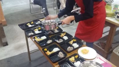 ↑お弁当にして、実際に皆さんに食べて頂きました。結構なボリュームでしたが、皆さん完食でした。