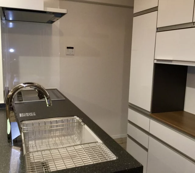 システムキッチンとは、シンク、調理台、コンロ、収納が繋ぎ目なく一体化しているキッチンです。