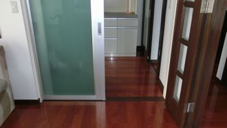 オープンの開口枠から引き違い扉の設置。(バリアフリー工事も)