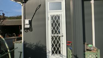 ルーバー窓から断熱勝手口ドアへ入れ替え。