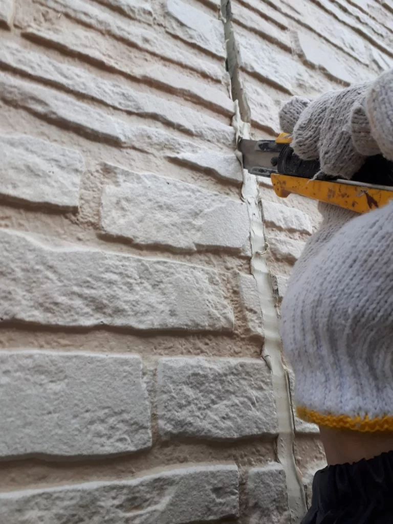 代表親方ブログコーキング打ち替え工事 相模原市緑区W様邸コーキング除去作業除去したコーキング 硬化してしまっている箇所、弾性が残っている箇所、様々でしたが全部除去しました。除去完了状況コーキング充填作業凹凸が激しいサイディングなので、塗装完了時の仕上がりを見越して充填量を調整します。コーキング充填完了です。無料お見積はこちら