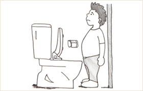 もし、あなたの家のトイレが狭かったら(例:80㎝×120㎝)、大型サイズの便器を設置したとき、便器の前の部分と壁(もしくはドア)までの距離がかな り短くなります。座って用を足す分にはそれほど不便を感じないので、女性は気づきにくいのですが、立って用を足す男性にはとても使いにくい空間になりま す。体の大きな人だと、まったく身動きがとれなくなることもあります。そうなると狙いも定まらず(失礼!)、便器廻りを汚してしまうこともしばしば。ス ペースがせまいと床の拭き掃除もしにくくなるなど、衛生的にも良くないことが多いです。