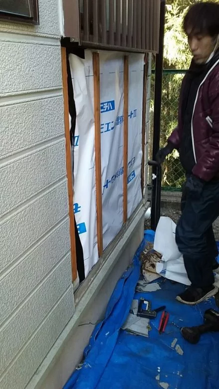 現場親方ブログ外壁から水漏れ!? 相模原市 緑区 I様邸 外壁内部工事こんにちは。 リ・フォーユーの武内です。相模原市 緑区 I様邸 外壁の大工工事↑今回、施工させて頂きます。I様邸です。↑お風呂場のある場所の外壁から水が出てくるとの事でしたので、外壁を解体して内部の状態を確認します。↑材木の一部が傷んでいたので、入れ替えて、防水シートを張ります。↑防水シートを張り、サイディングが張れるように下地を作ります。↑サイディングを張り、釘を打ちました。↑サイディングの隙間をコーキング処理して完了しました。無料お見積はこちら
