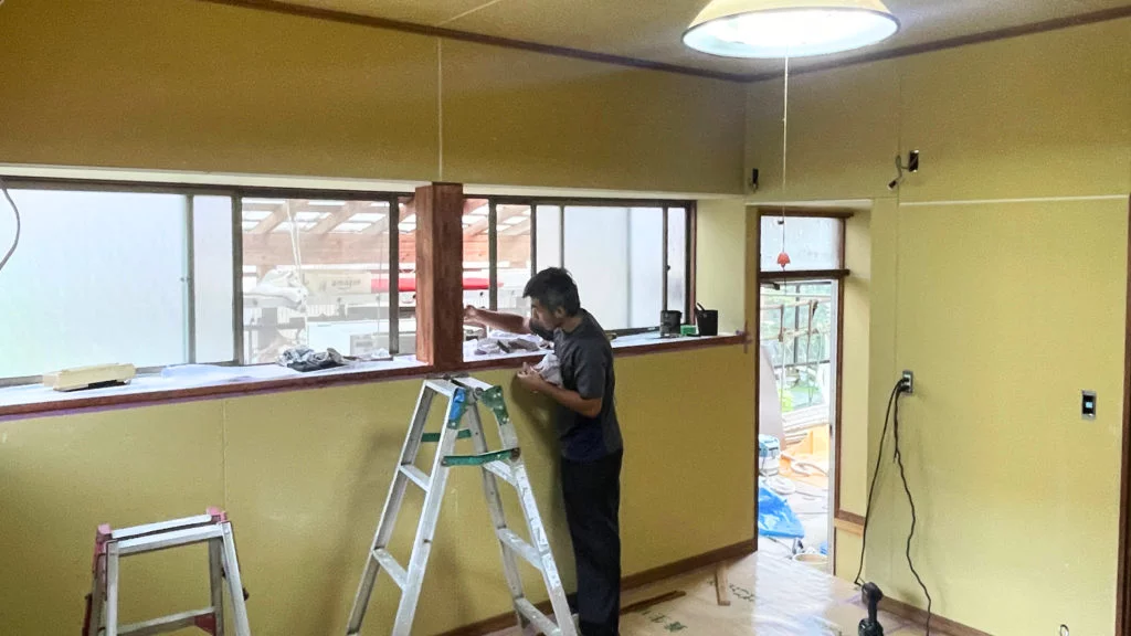昨年は居間の内装張替え、経年劣化や木材の収縮などによって隙間ができてしまい、寒さ対策として