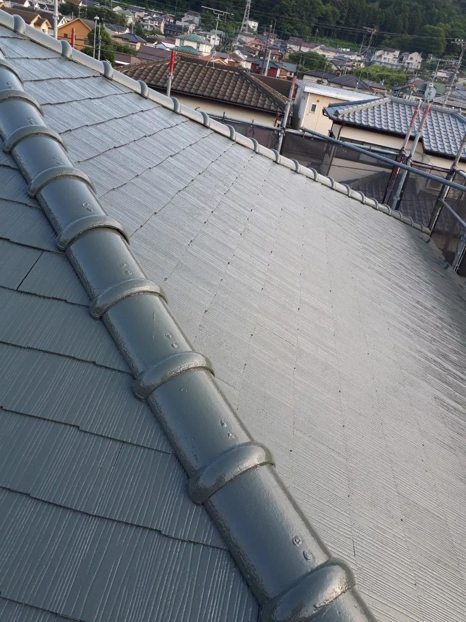 温水器が設置してあった場所の屋根瓦の表面がデコボコしていたので、塗装と磨きを繰り返して滑らかに