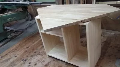 分かりずらいかもしれませんが、小さな材が組み合わさって一枚の材になっています。寄木細工のようですね。