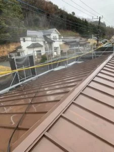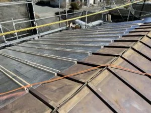 ☝️既存の屋根の凸部(瓦棒)を利用して、空気層の空間の下地を作ります。