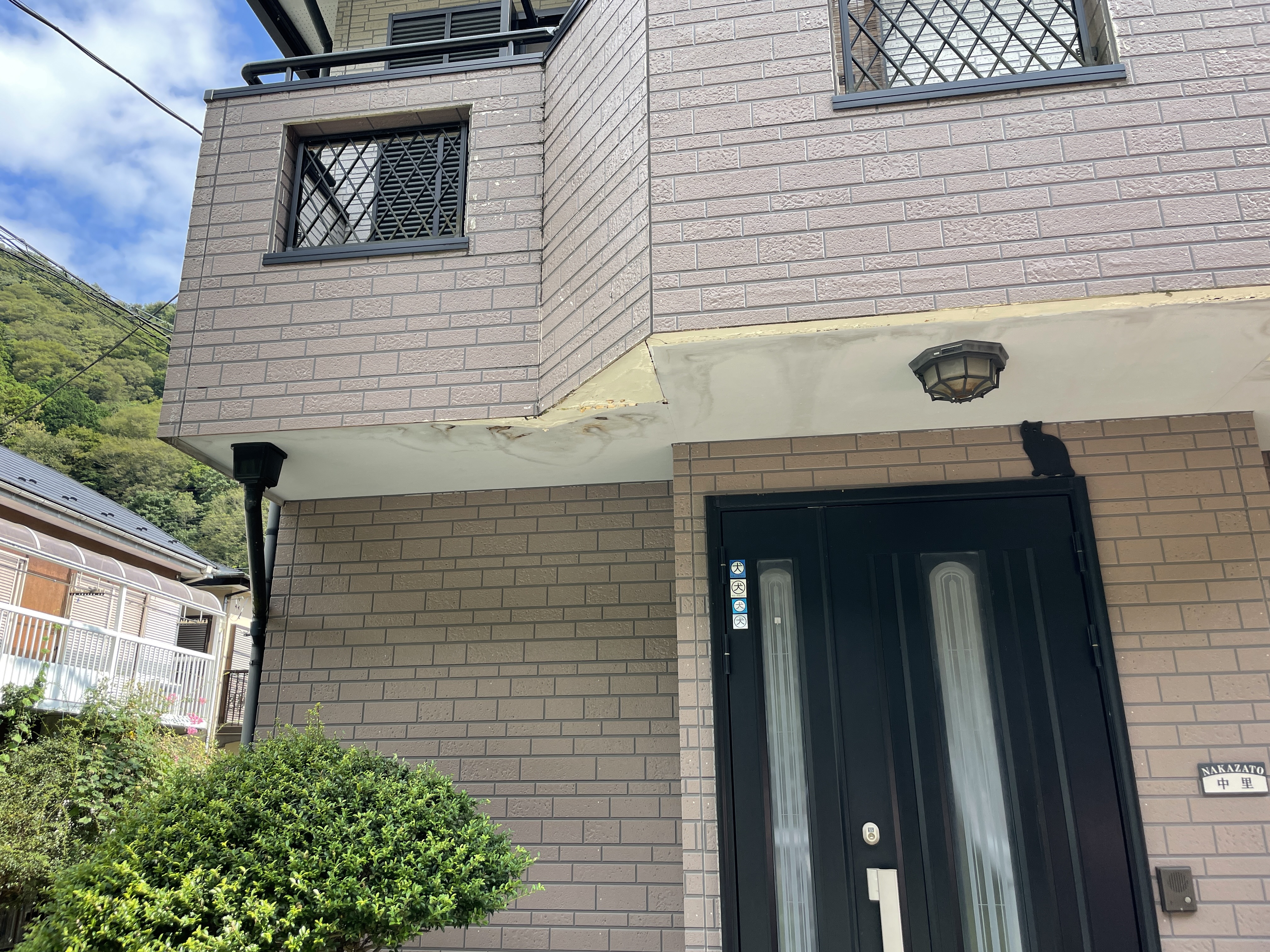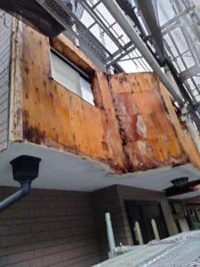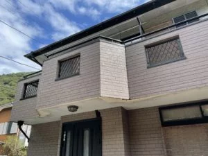 ☝️ベランダ下の部分の表面の塗膜が剝がれてしまっています。