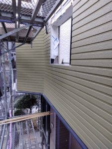☝️新しいサイディングを張っていきます。今回は水切りも追加で設置しています。