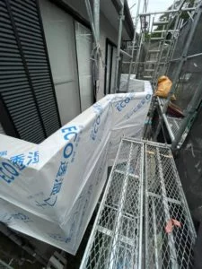 更に天端には水切りシートを重ね張りして外壁の下地を保護します。
