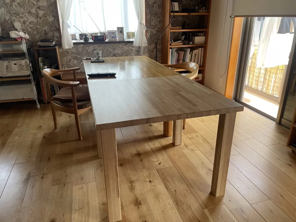 さらに、お孫さんたちが来たときに「広々使えるテーブルがあるといいな」とのご相談をいただき、脚が取り外しできるオリジナルテーブルを製作しました!