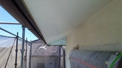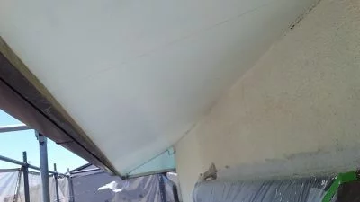 ↑先ずは軒天井(軒裏天井)の塗装から行います。