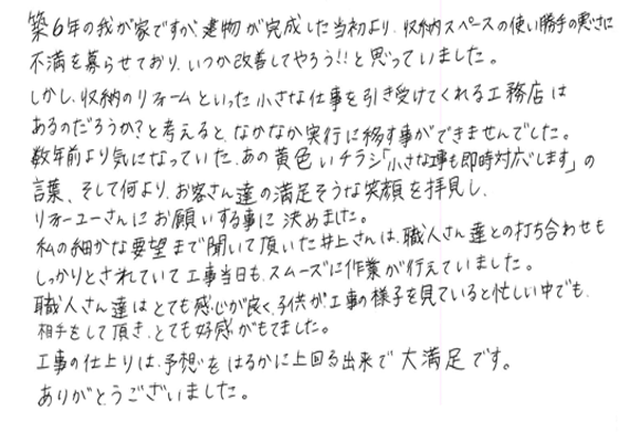 工事の仕上りは、予想をはるかに上回る出来で大満足です。