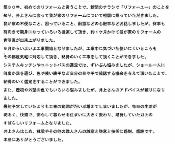 口コミ評判相模原市緑区 Y様(全面リフォーム)外壁から内装までの全面リフォームを請負ました。水廻りに関してはキッチンはYAMAHA、ユニットバスはタカラスタンダード、トイレはTOTOを入れました。無料お見積はこちら