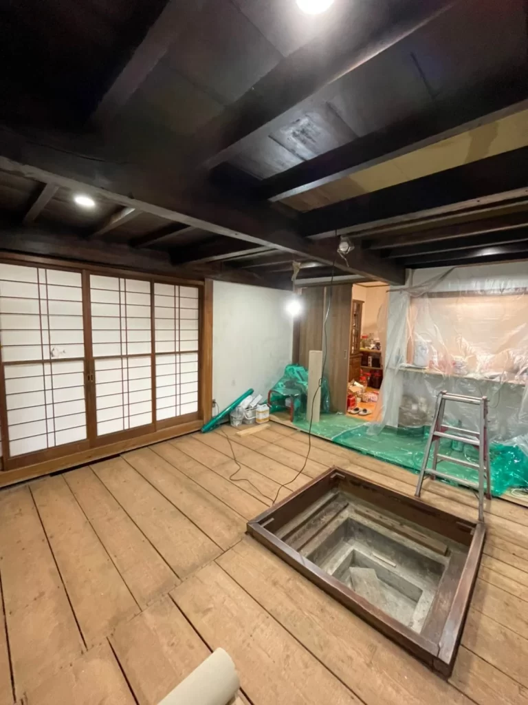 茶の間の天井を磨いて、煤やほこりを落としていきます。
