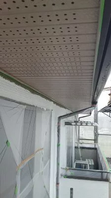 現場親方ブログこんにちは。リ・フォーユーの武内です。 相模原市 緑区 K様邸の外壁塗装を行います。 ↑外壁に下塗りを塗っていきます。 ↑軒裏天井も同じ色で塗装するので下塗りを塗ります。通気口の穴を塞がないように気を付けて塗ります。