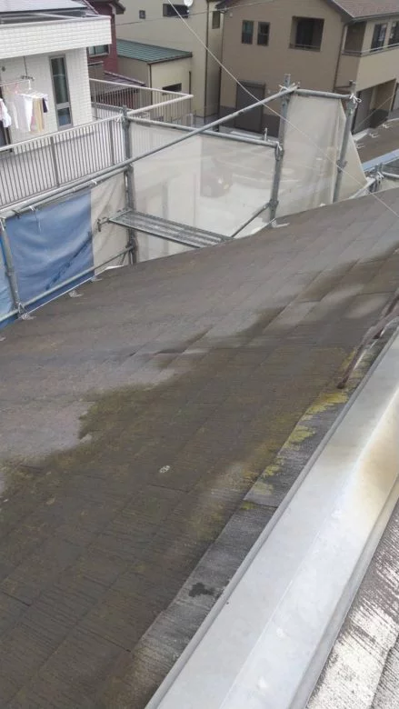 現場親方ブログこんにちは。リ・フォーユーの武内です。 愛甲郡 愛川町 О様邸 外壁塗装工事 水洗い洗浄を行います。 ↑屋根洗浄前 ↑屋根洗浄中 ↑屋根洗浄中 洗浄をしてしまうと古い塗膜はほとんどが剥がれてしまいます。 ↑屋根洗浄中完...