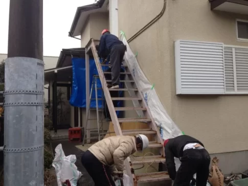 代表親方ブログ相模原市緑区外装リフォームのs様邸、着工です。まずは、外部階段の解体です。
