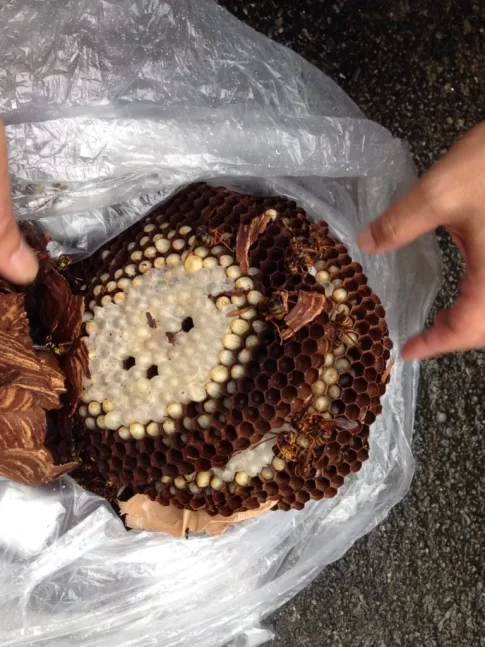 代表親方ブログスズメ蜂の巣です。白い幼虫がまだピコピコ動いていて気持ち悪いです。