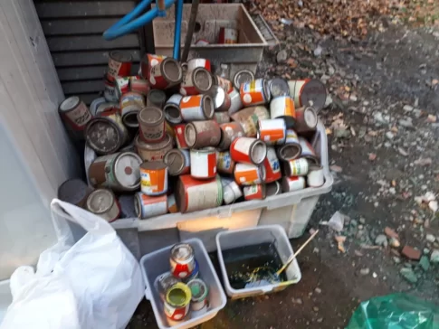 現場親方ブログこんにちは塗装施工担当武内です。 皆さんのお宅にも1つ2つは中身入りのペンキ缶が捨てられずにあるのではないでしょうか? 先日、置き場の片付けをしていた職人さんが年代物のブツを発見してしまいました。 見るからに古いもので中...