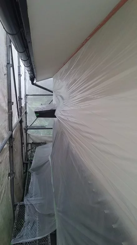 現場親方ブログこんにちは。 リ・フォーユーの武内です。 相模原市 緑区 K様邸 外壁塗装 軒裏天井と破風板の塗装 ↑養生作業 雨天でしたので、雨の当たらない軒裏天井の塗装を行いました。 ↑軒裏天井塗布作業中 軒裏天井の塗料を塗布して...