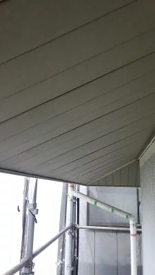 現場親方ブログこんにちは。リ・フォーユーの武内です。 相模原市 緑区 H様邸の施工の続きです。 ↑軒裏天井の施工前です。 板金の軒裏天井でした。 今回は外壁と同じ色(シャンパンアイボリー)にしていきます。 ↑下塗り塗布完了です。 ↑中...