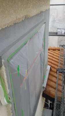 現場親方ブログこんにちは。リ・フォーユーの武内です。 相模原市 緑区 T様邸のサッシを入れ替えたので、モルタル部分の模様付けを行います。 ↑吹き付け材の飛散で周りを汚さないように養生を行います。 ↑養生完了です。 ↑既存の外壁の模様に...