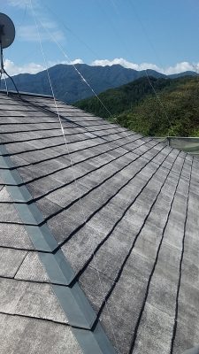 現場親方ブログこんにちは。リ・フォーユーの武内です 相模原市 緑区 のK様邸の屋根塗装を行います。 ↑施工前の屋根です。 ↑洗浄して、下塗り、中塗りを塗布しました。 ↑下屋根も同様に行いました。