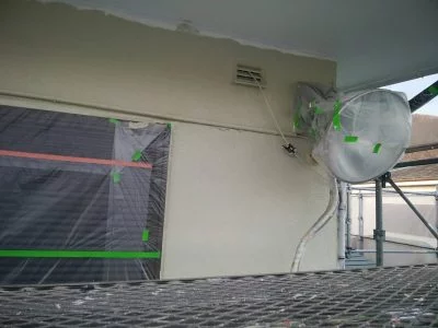 現場親方ブログこんにちは。リ・フォーユーの武内です。 相模原市 緑区 М様邸の施工の続きを行っていきます。 ↑サッシや下屋根等の養生を行います。 ↑外壁には白色の下塗り材を塗布します。 ↑軒裏天井は、今回白い艶のある塗料で塗装を行いま...