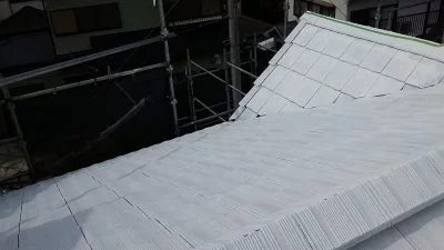 現場親方ブログこんにちは。リ・フォーユーの武内です。 相模原市 緑区 H様邸の屋根の塗装を行います。 ↑屋根に下塗り材を塗布していきます。 ↑屋根の下塗り完了です。 ↑翌日、中塗りを塗布しました。