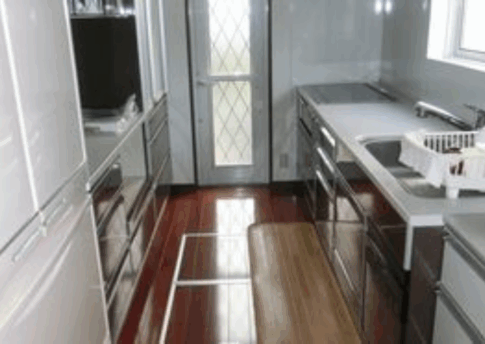 キッチンリフォーム縦割りの2世帯型住宅のN様宅。以前は賃貸として貸していたことも。この完全2世帯住宅の界壁をぶち抜いて、完全1世帯住宅にしたい。お風呂もひとつに、トイレもひとつは解体して、ぐるりと回れる家に変身。 キッチン入れ替え(背面の...