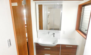 特徴 :奥行きは狭いけど、幅を広く活用した洗面台